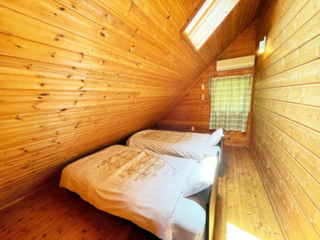 2階の洋室は2部屋あり、1部屋はダブルベッド2台、もう一部屋にはシングルベッド3台設置しています。